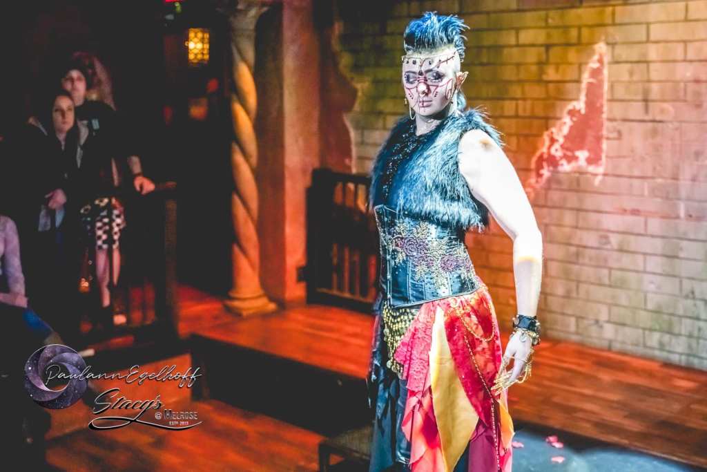 Dustin Riot (DR): Typically, when someone asks what I do, I tell them I am a drag performer and continue the conversation. If they ask what that is I respond with, “Do you know what a drag queen is? Well I do that, but I am a king.” At the end of the day I believe there is no difference, we all work hard to make costumes, put on makeup, and go on stage. To me, everyone is just a drag performer.