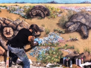 B: It’s blown up…young artists coming out here to work on warehouses, young families coming out here because the property’s cheap, but they have kids, and the kids are punk-ass, you know they like art and tattoos, and so young people need to work somewhere. The warehouses have walls to paint and a bunch of artists to do them.