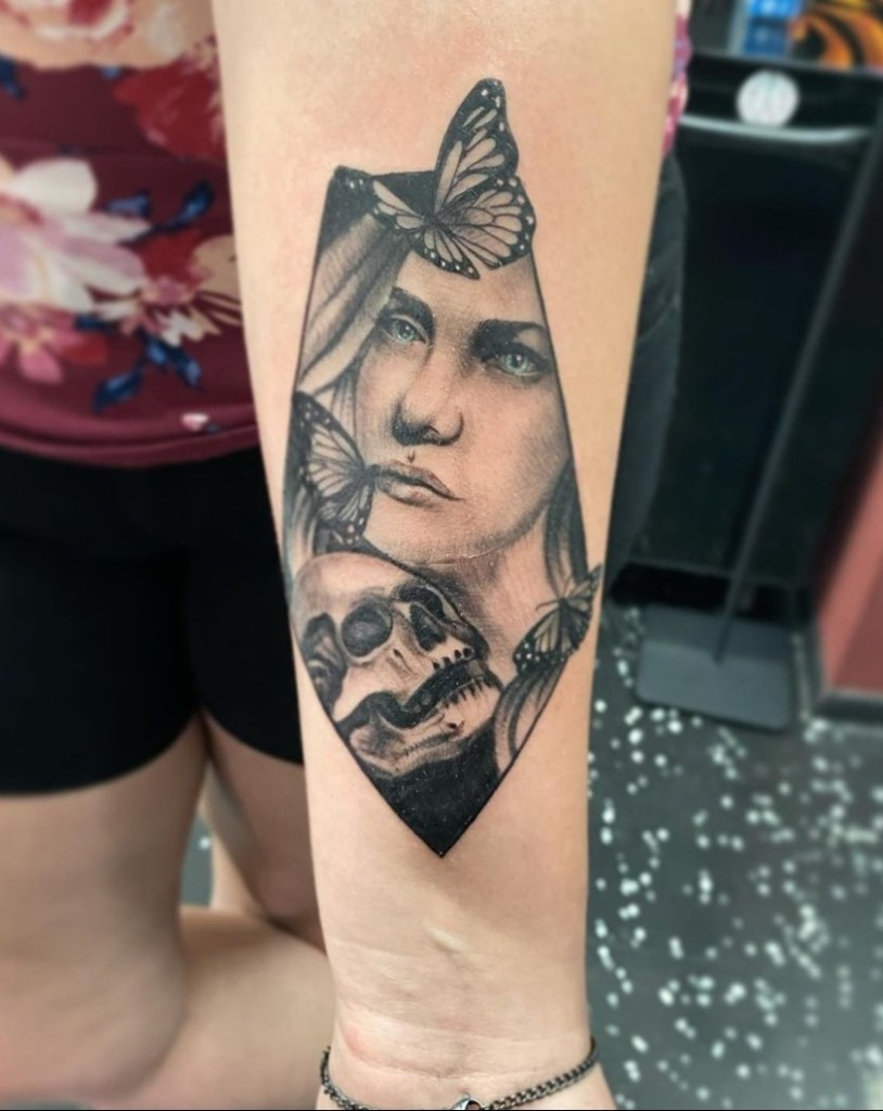 Luckii: My very first time tattooing on skin was in August 2017. It was a unicorn skull outline. The process of setting up my station felt calming. I was nervous but as soon as the needle went into the skin , all anxieties and overthinking turned into excitement and determination. I was instantly determined to do my very best one line at a time.